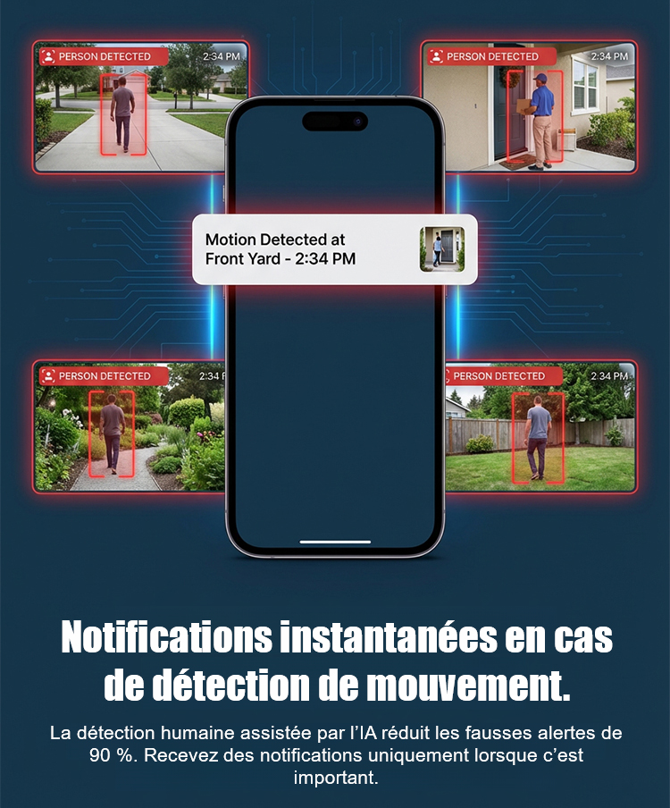 ✅Intelligence Intégrée : Détection de mouvement précise avec alertes en temps réel directement sur votre smartphone. 🌐